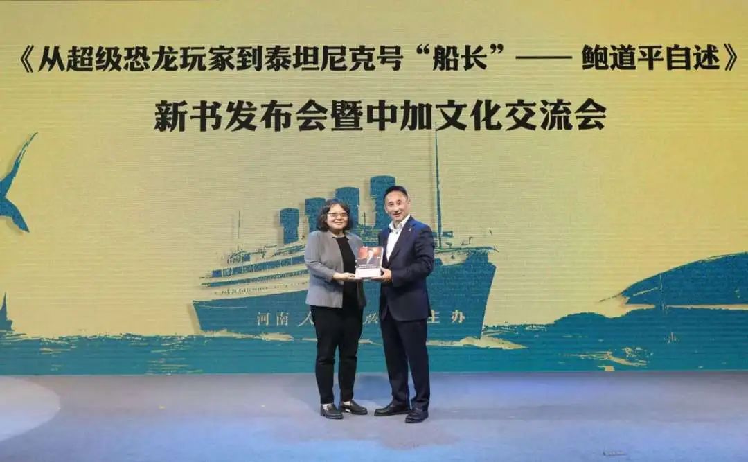 中原出版传媒集团副总经理李文平在致辞中强调,本书选取从河南走出去的鲍道平先生的跨国实践,生动呈现了中原文化在全球化语境下的融合创新。鲍道平先生从对恐龙文化的深耕到参与泰坦尼克号文物运营,其足迹跨越国界,成为中加民间文化交流的桥梁。河南人民出版社出版本书旨在将其作为文化“走出去”的鲜活案例,聚焦“高层次文化传播、高质量内容供给”,探索地方优秀文化如何更好走向世界的新模式。这本书不仅记录了个人独特经历,更是对文化出海新路径的有益探索,为“以文促贸、以贸彰文”提供了宝贵经验,是我们向世界展示中华儿女智慧、韧性与创造力的具体实践。